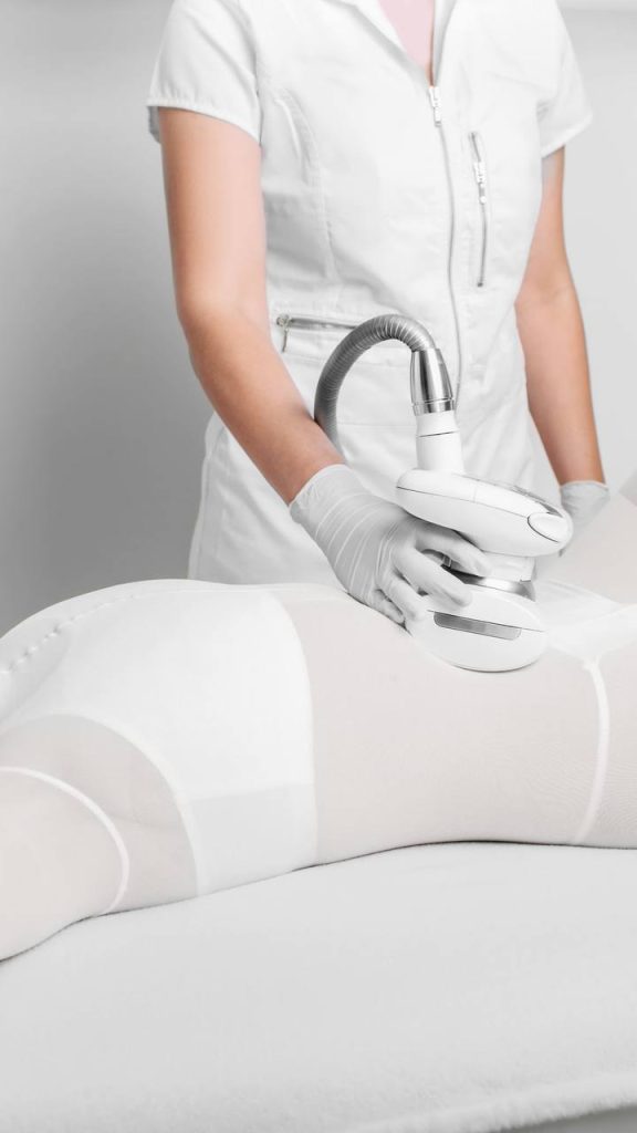 Перед началом процедуры липомассажа тела клиент надевает специальные колготки, которые обеспечивают комфорт и улучшают скольжение аппарата по коже. Косметолог выбирает подходящую насадку и настраивает аппарат в зависимости от целей массажа и особенностей клиента.