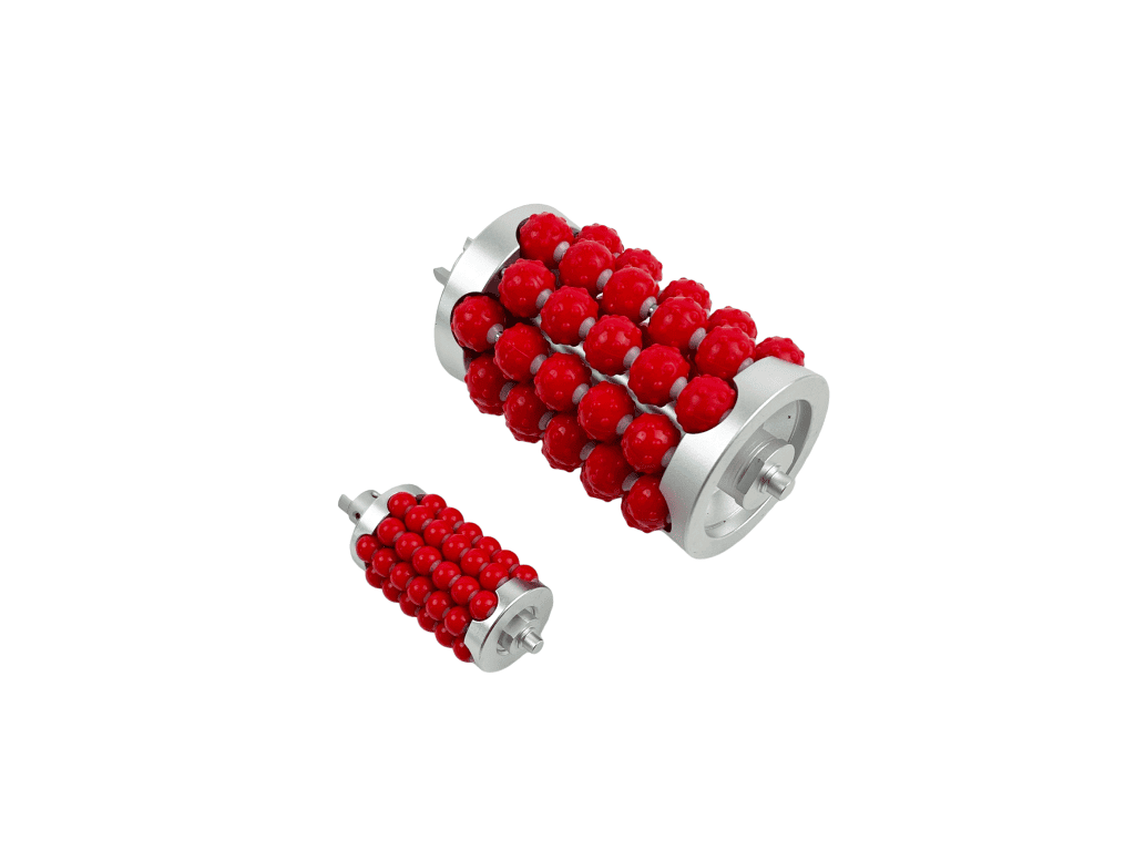 - Красные силиконовые ролики: для интенсивного лимфодренажа и устранения выраженного целлюлита;