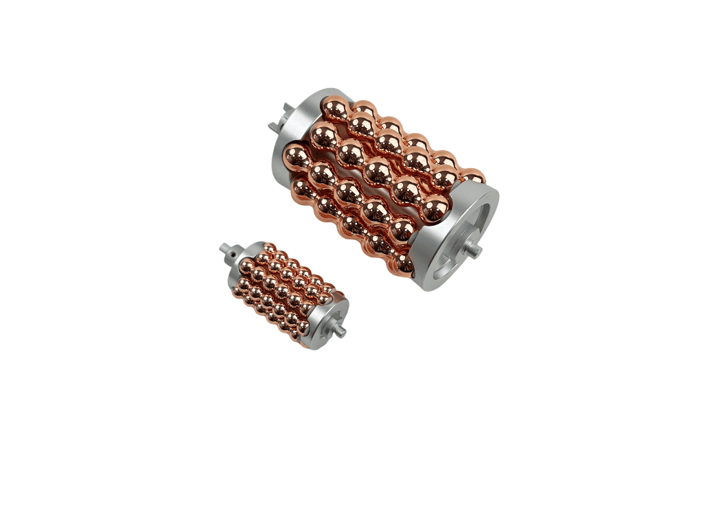 - Золотые металлические ролики: усиливают тепловой эффект, стимулируя обмен веществ и разглаживая кожу;